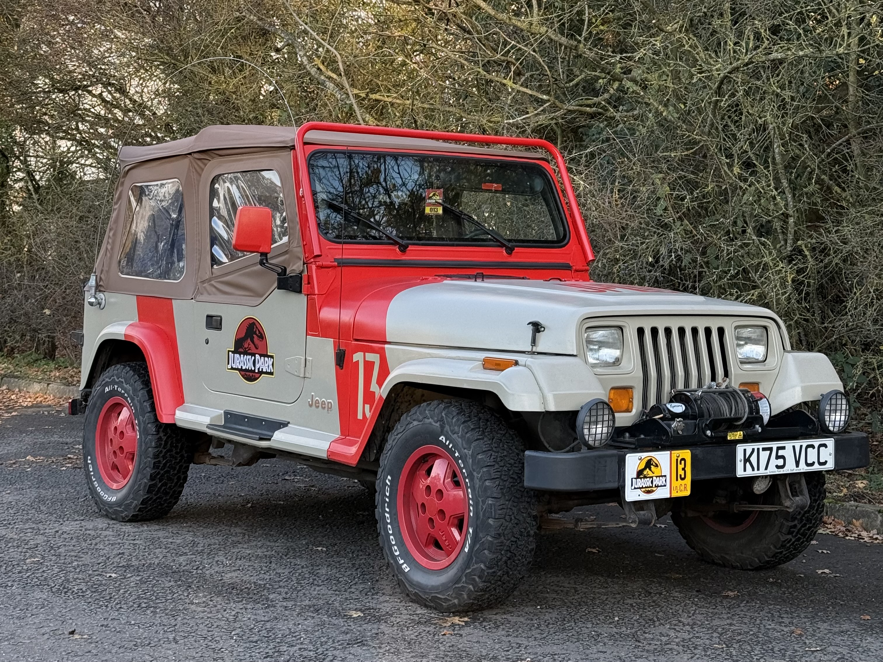Jurassic Jeep 13 is an original left hand drive 1992 Jeep Wrangler YJ 4.0L fully restored to replicate the iconic Jeep seen in the movie Jurassic Park.
